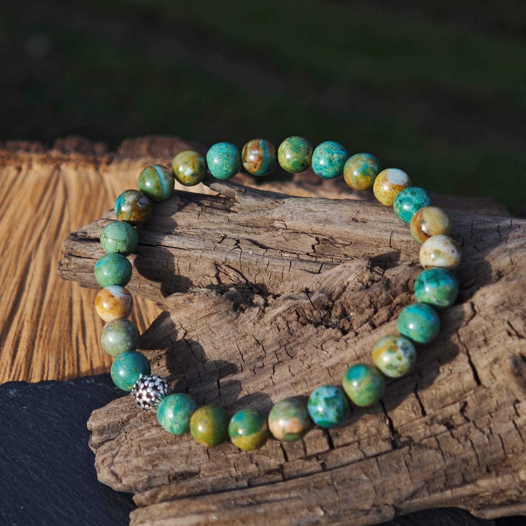 Edelstein Armband EMOTIONALE KLARHEIT Atacama Opal Kugel S925 6mm