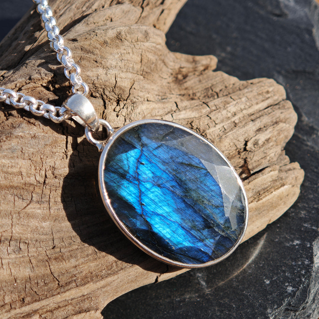 Labradorit Unikat massiver S925 Anhänger 3cm