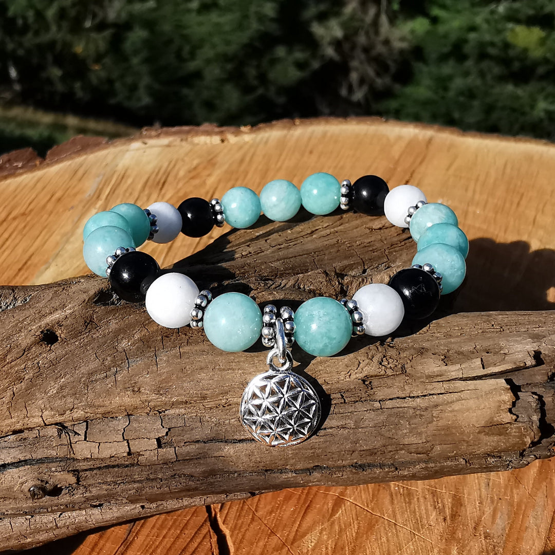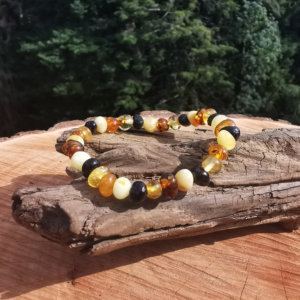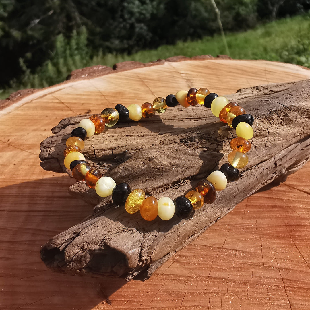 Unsere Armbänder sind elastisch also auf einem Gummi aufgezogen.