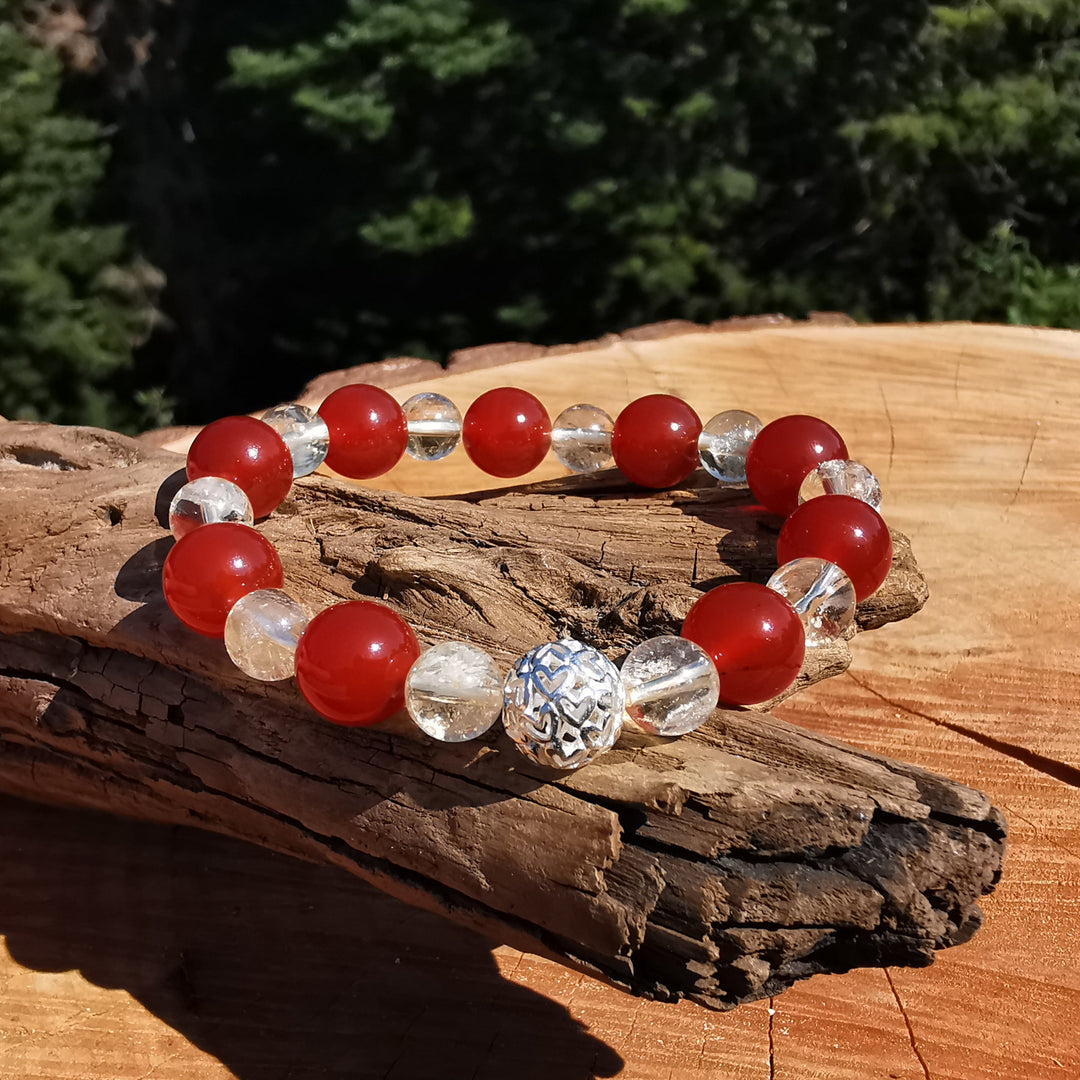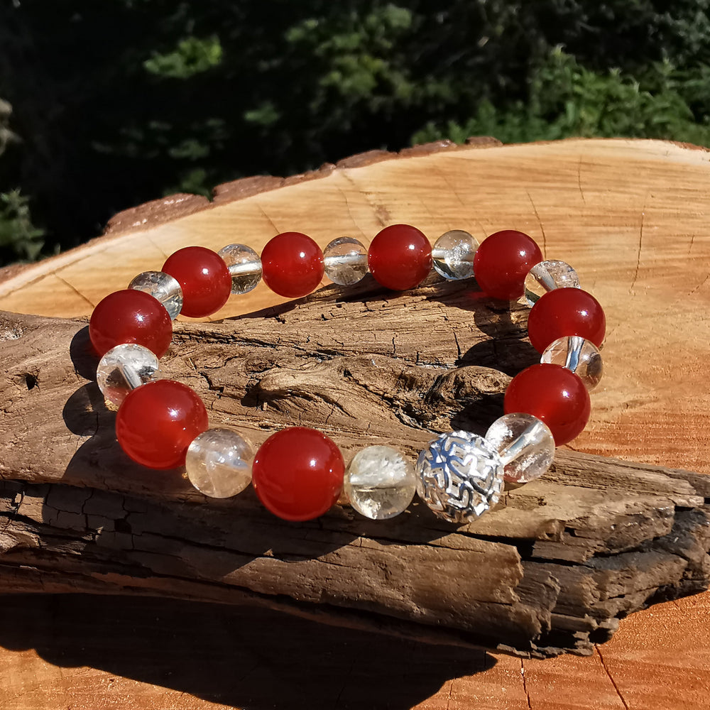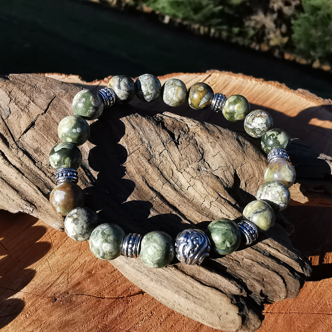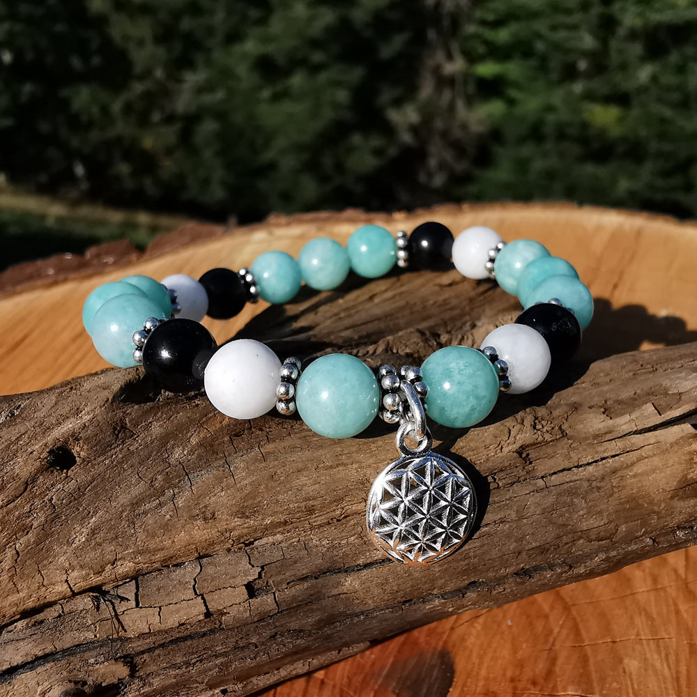 Unsere Armbänder sind elastisch also auf einem Gummi aufgezogen.