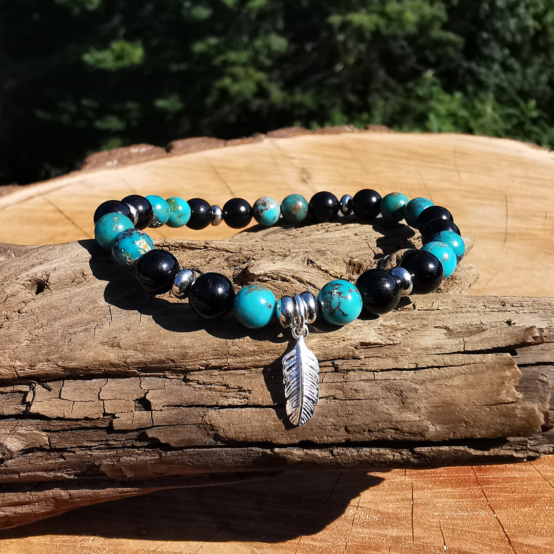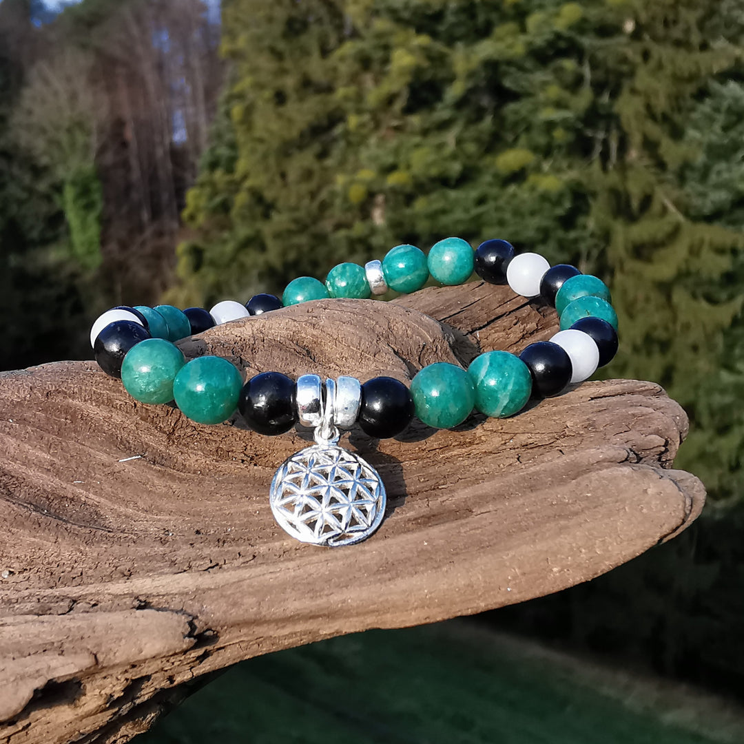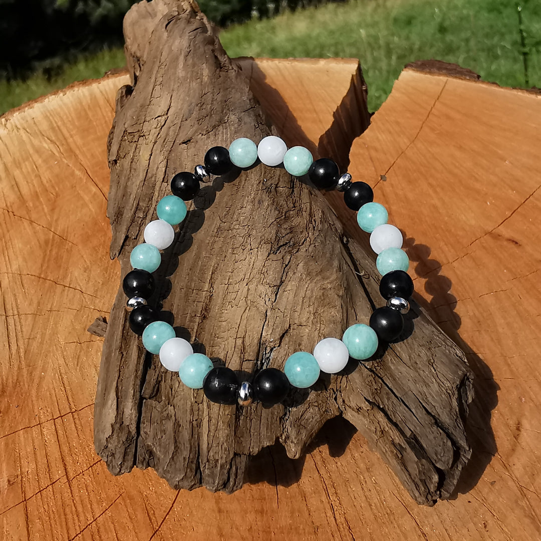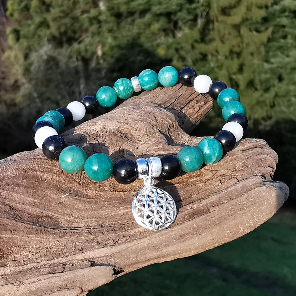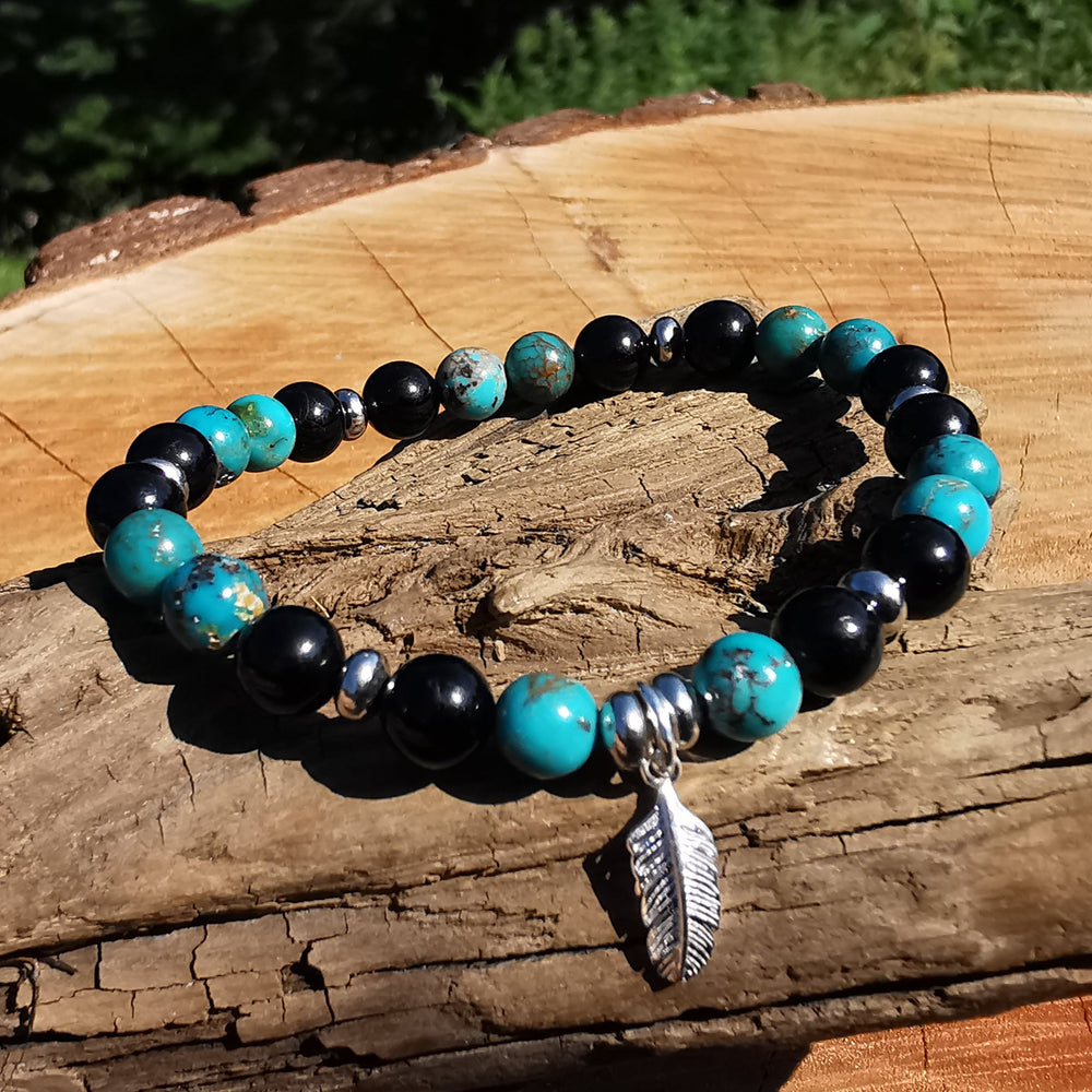 Unsere Armbänder sind elastisch also auf einem Gummi aufgezogen.
