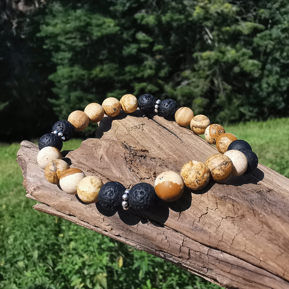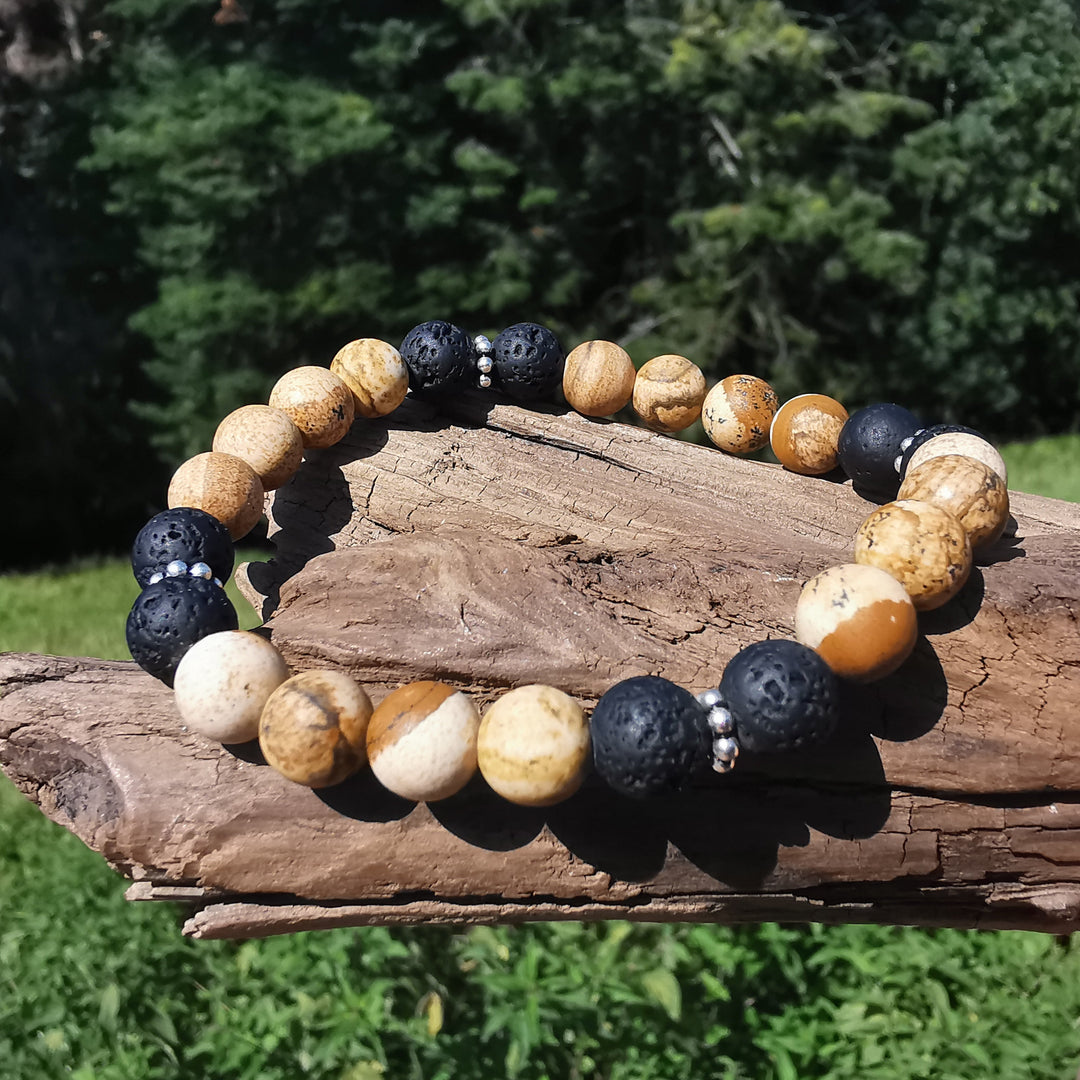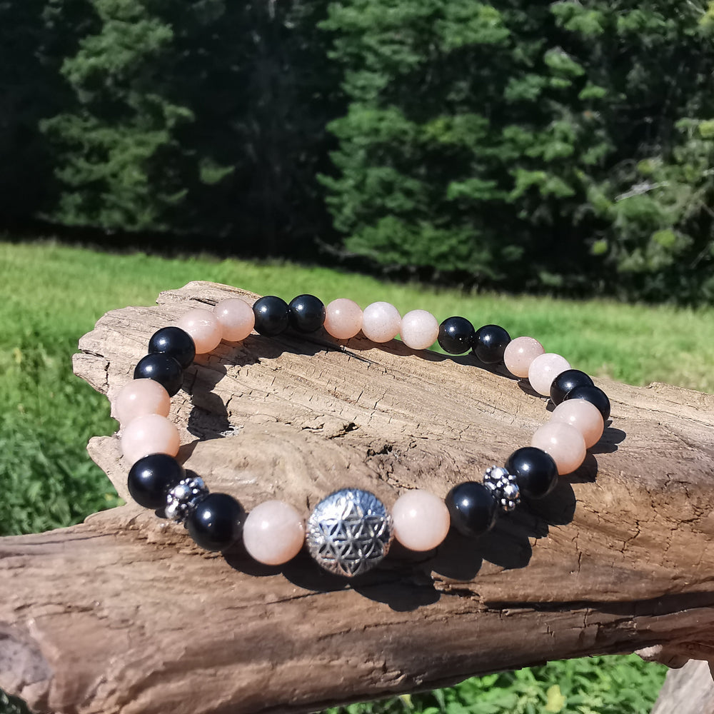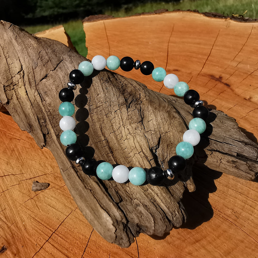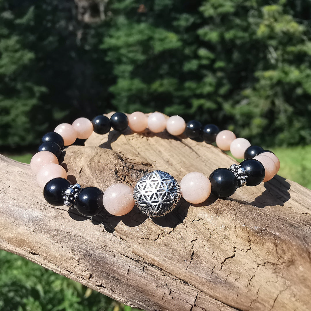 Unsere Armbänder sind elastisch also auf einem Gummi aufgezogen.
