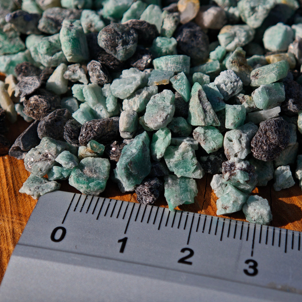 Die kleinen Rohsteine haben eine Größe von ca. 0,1 bis 0,3 cm (+/-).