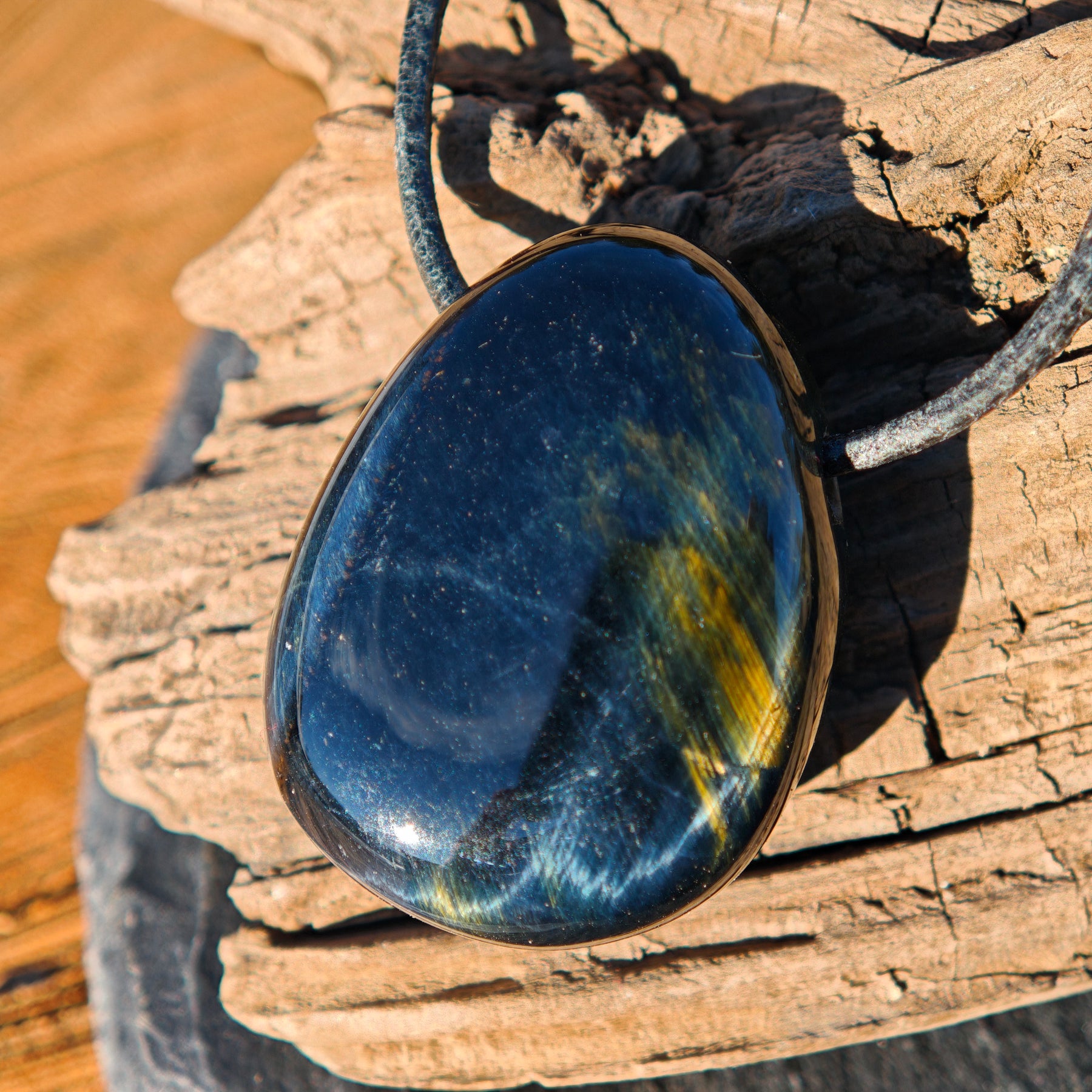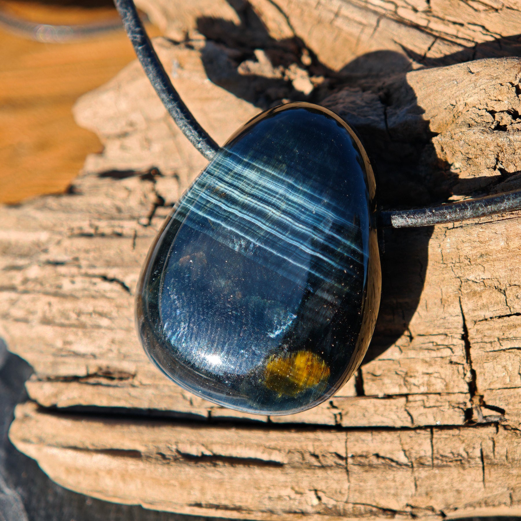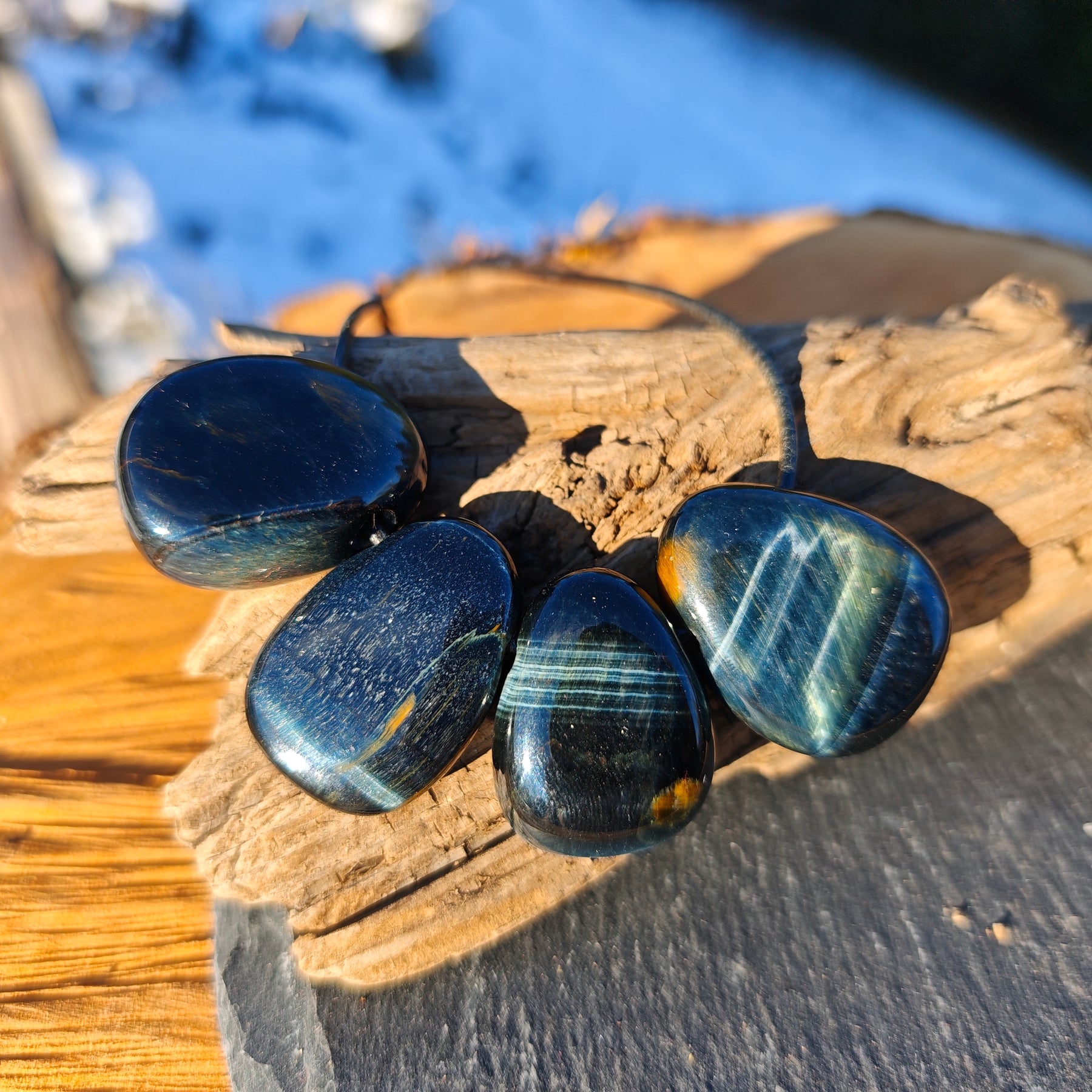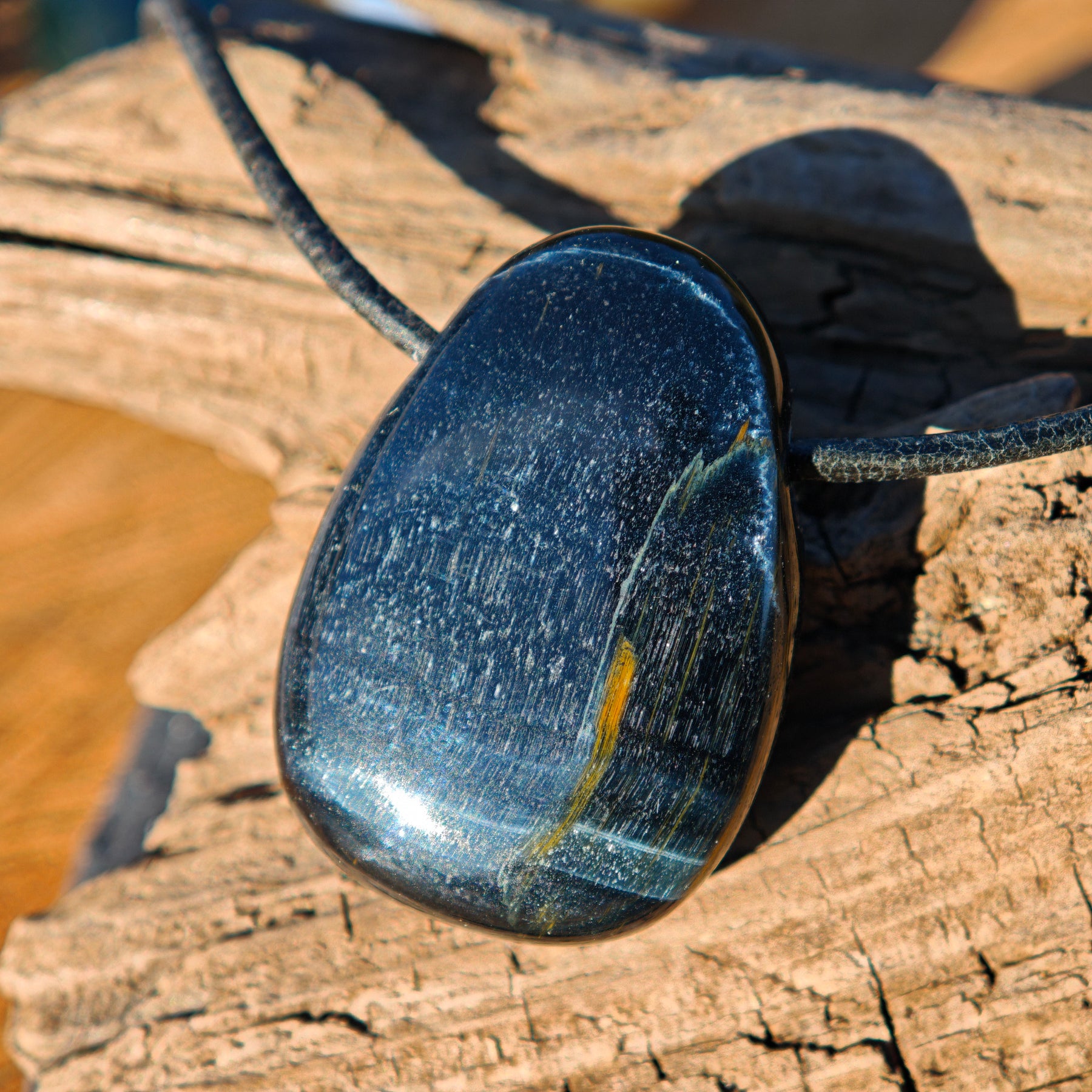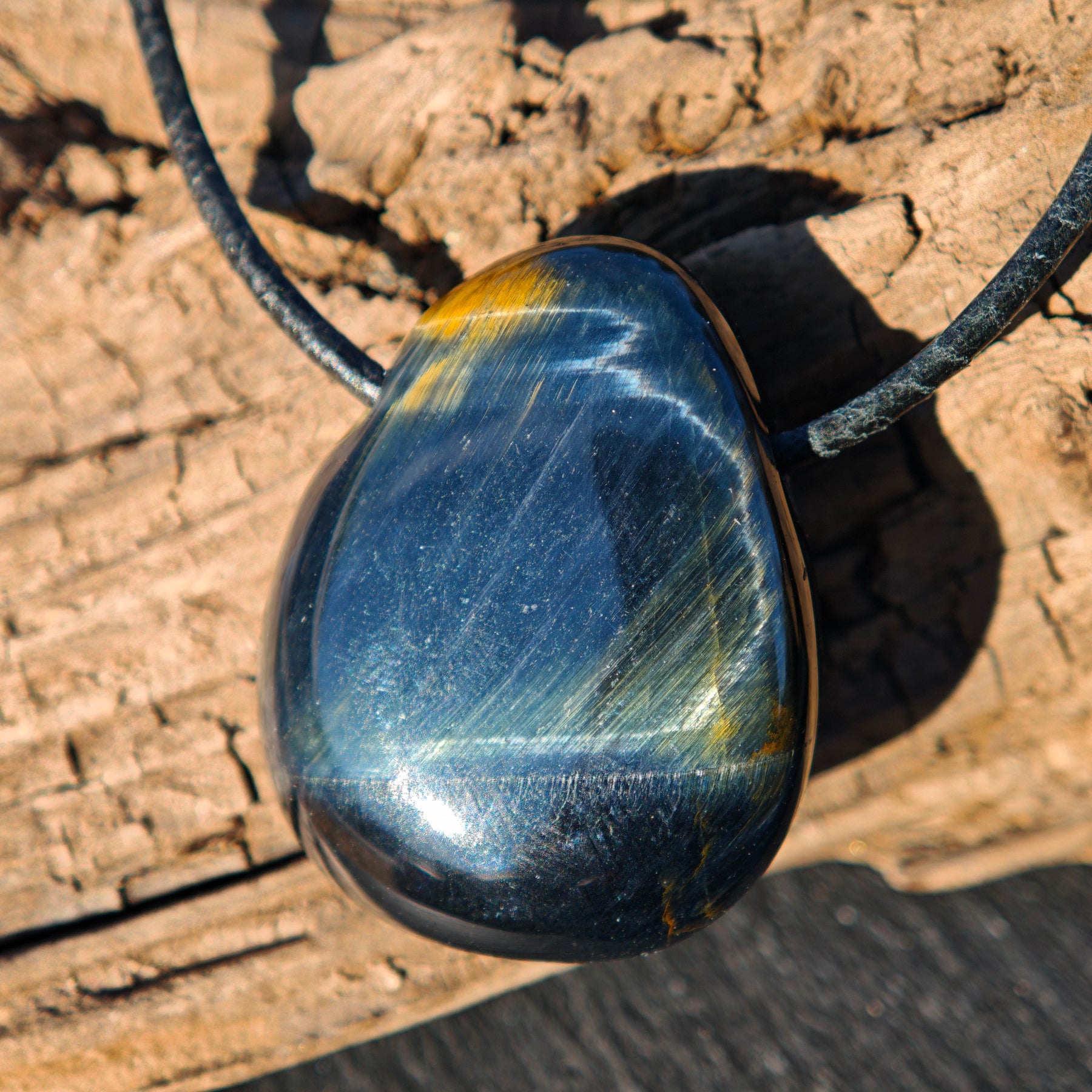 Das Falkenauge, auch bekannt als blaues Tigerauge steht für Mut, Klarheit, Schutz und Weitblick. Sie zeigen eine faszinierende blaue Lichtreflexion der Faserstruktur.