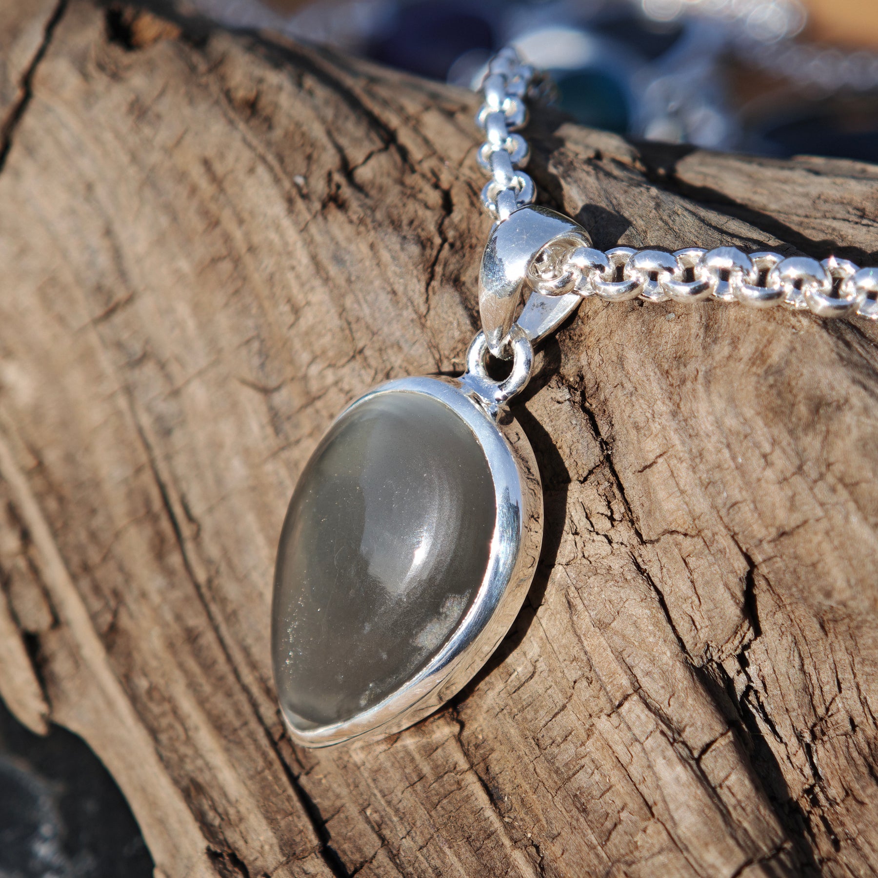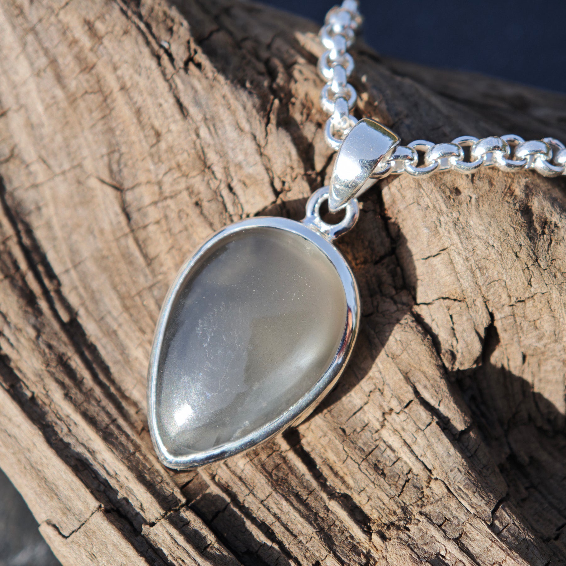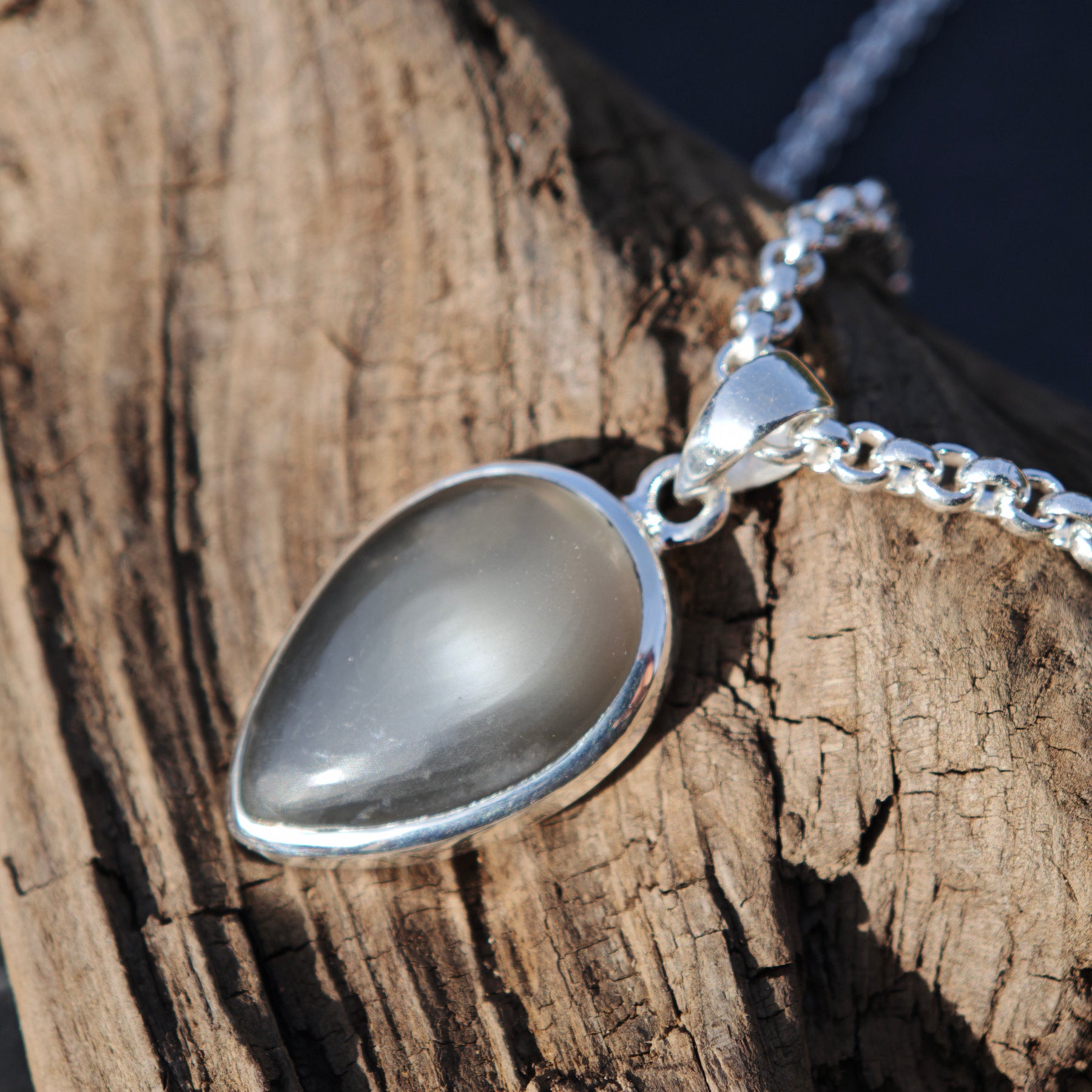 Mondstein grau Tropfen einmalige Extraqualität gefasst in Silber 925