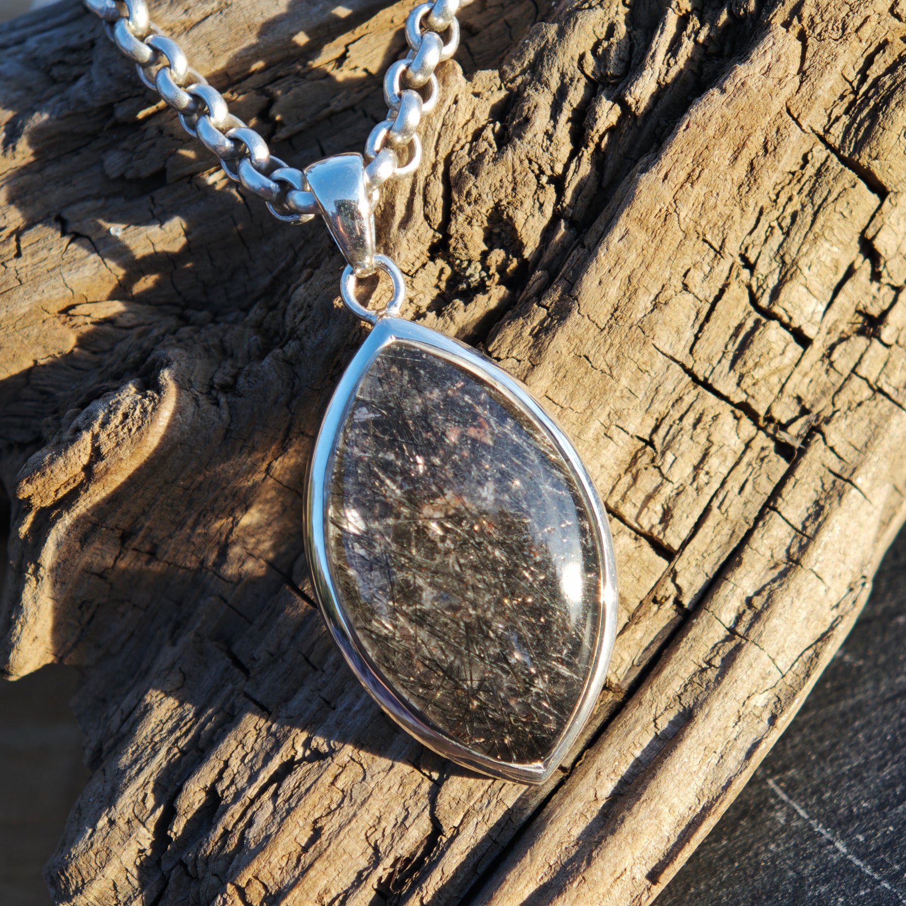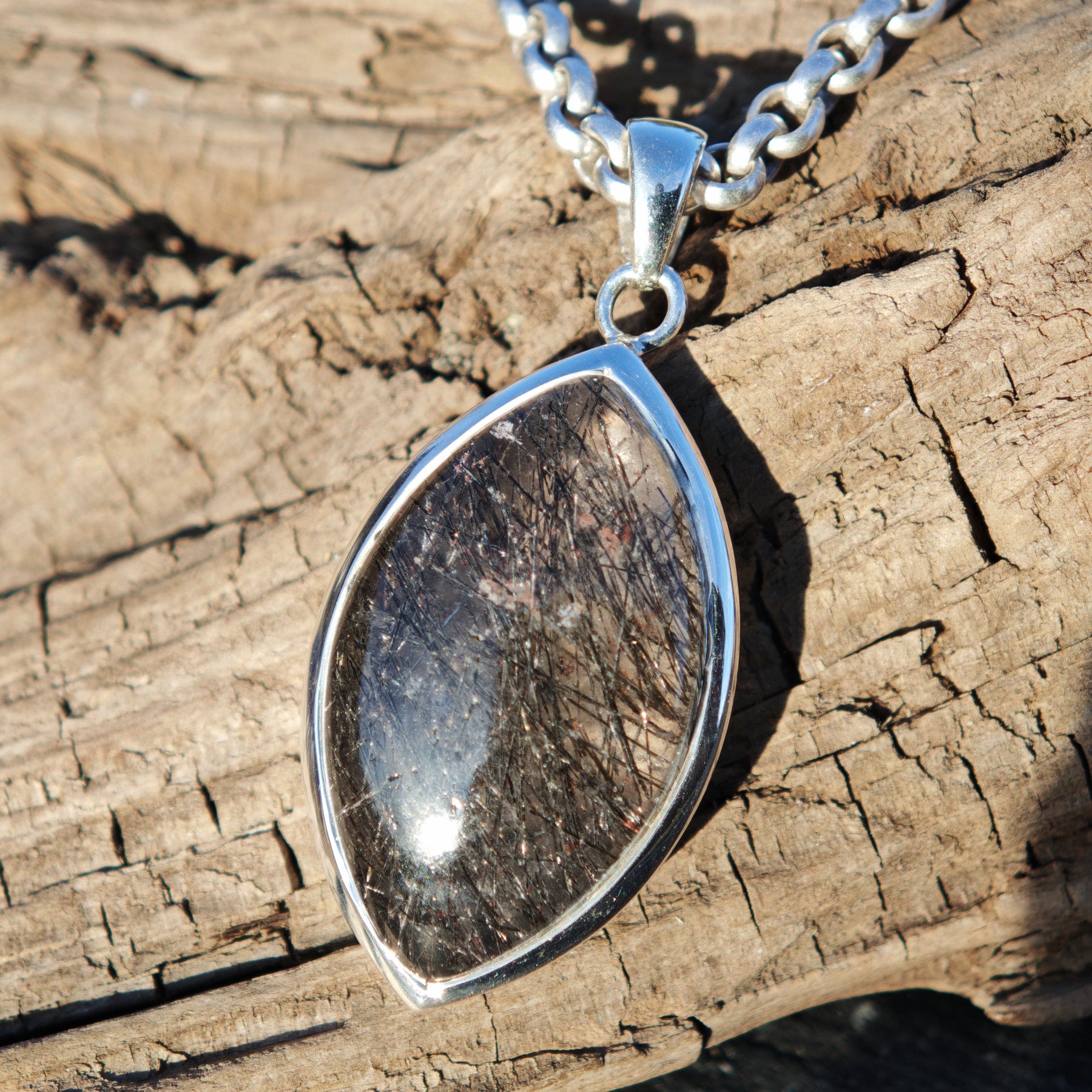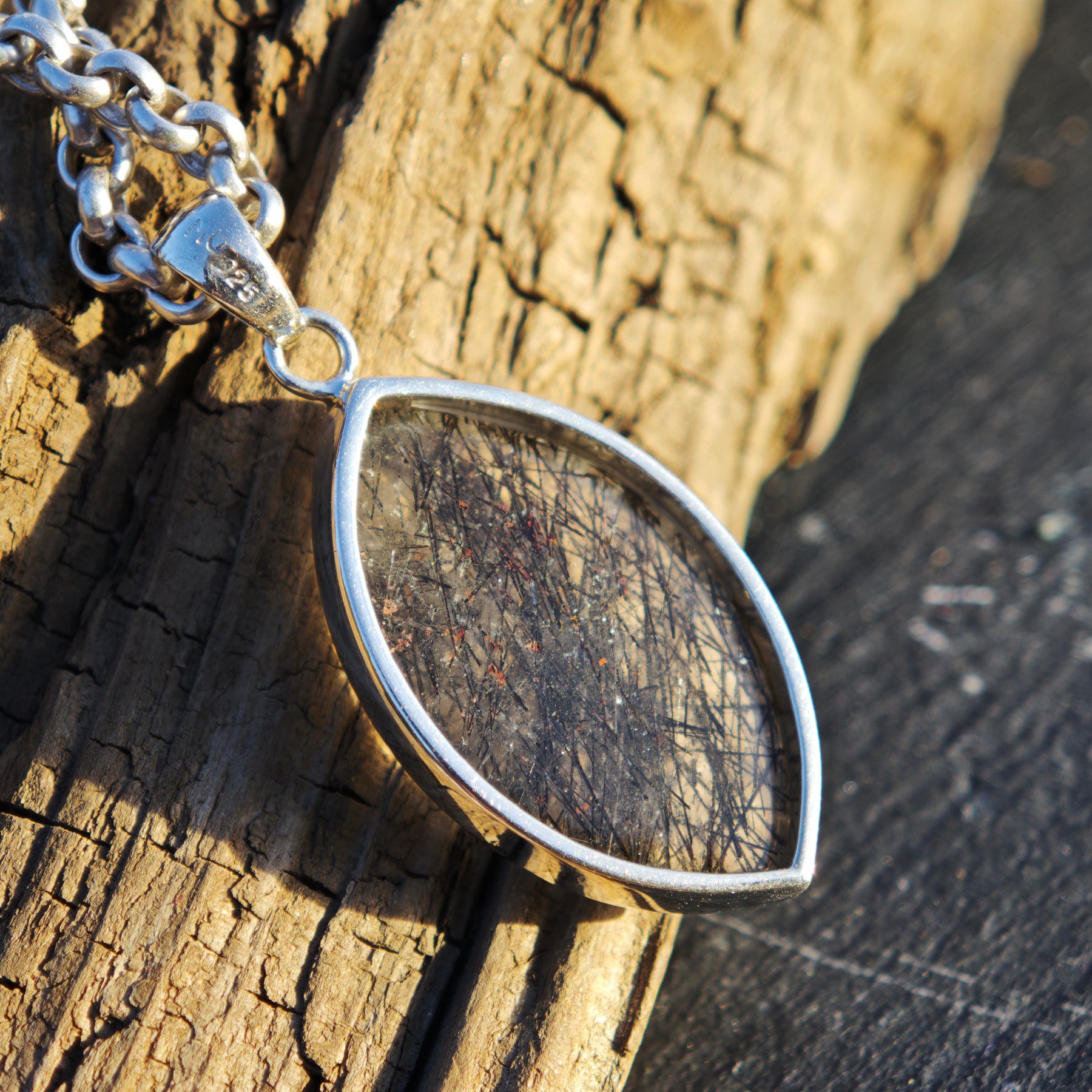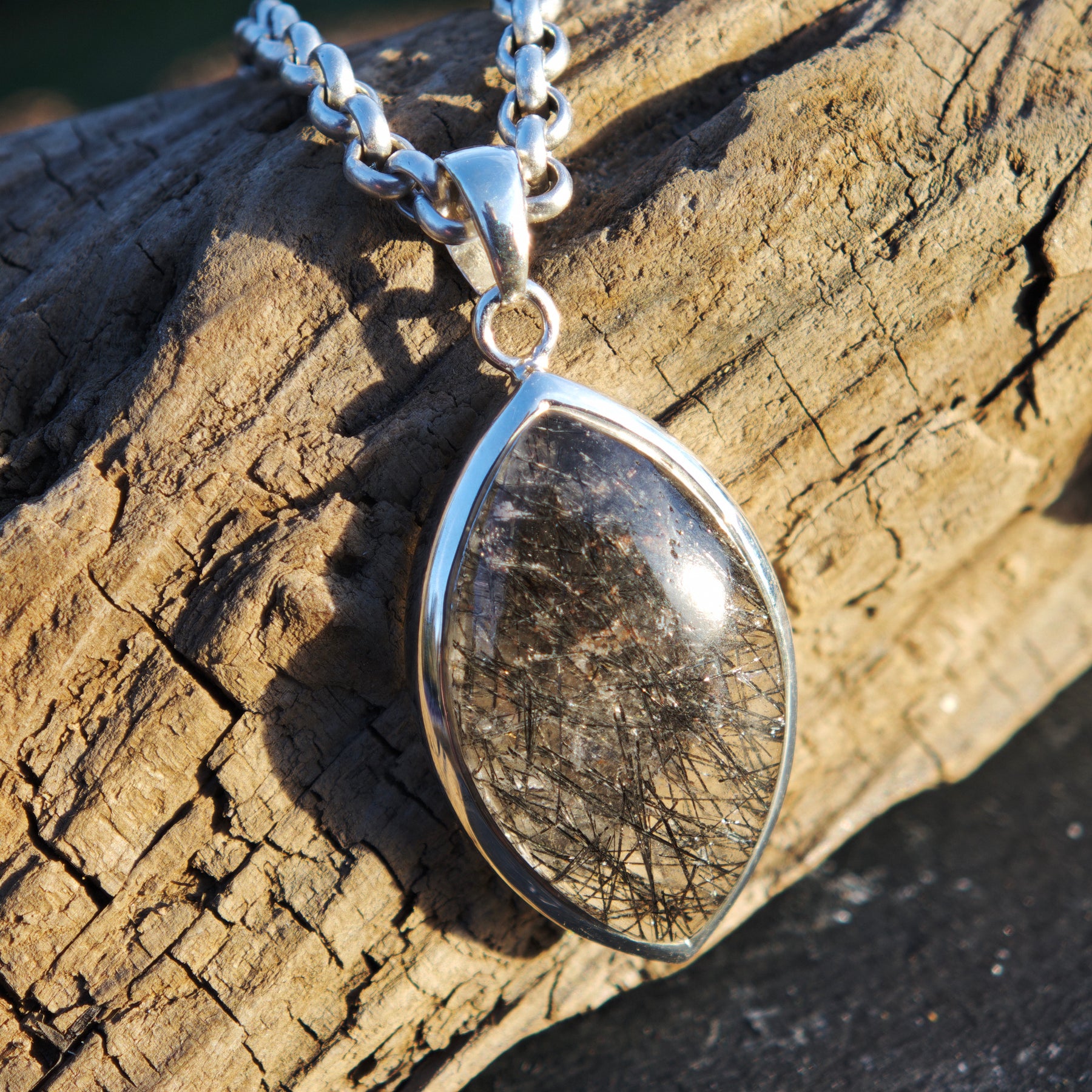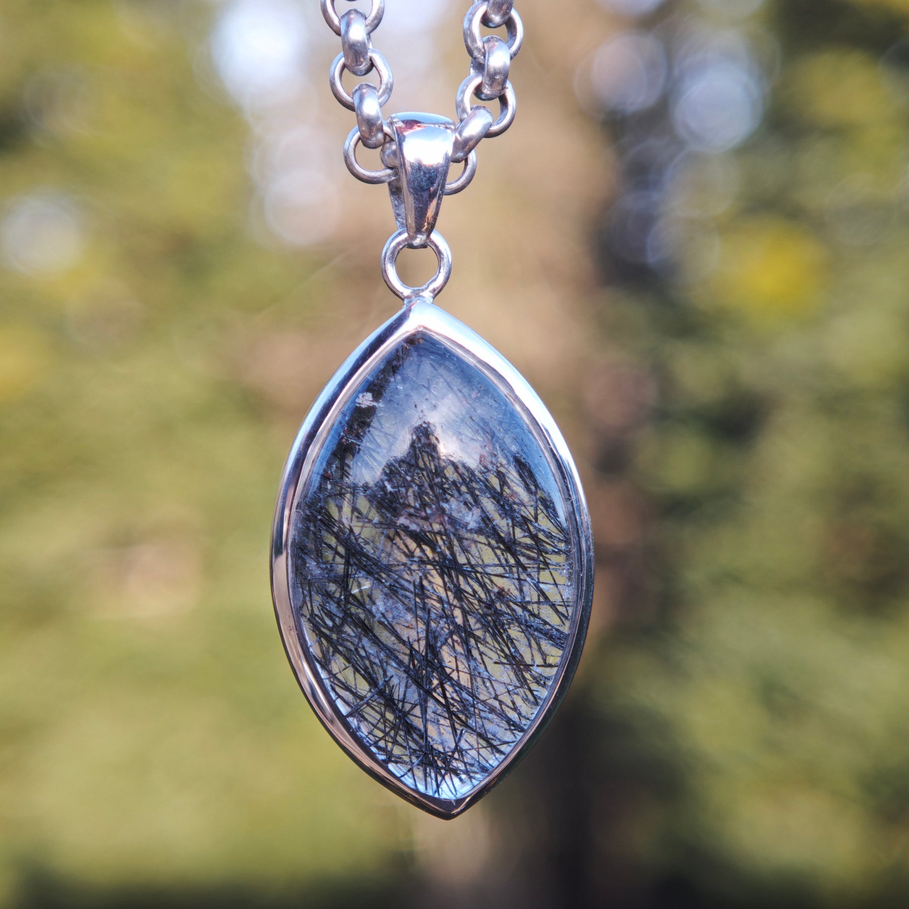 Schwarzer Turmalin Quarz Extraqualität Anhänger gefasst in Silber 925