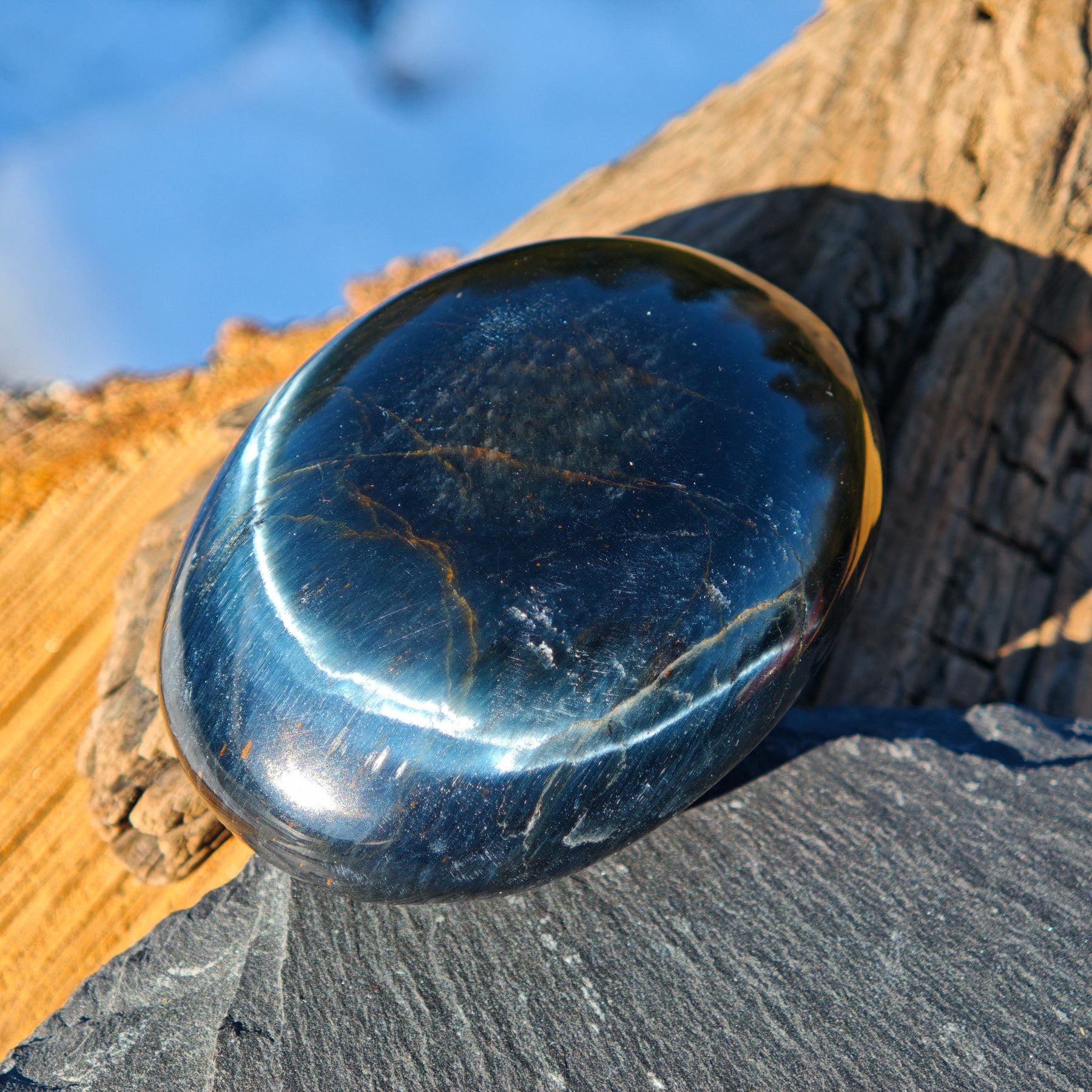 Das Falkenauge, auch bekannt als blaues Tigerauge steht für Mut, Klarheit, Schutz und Weitblick. Sie zeigen eine faszinierende blaue Lichtreflexion der Faserstruktur.