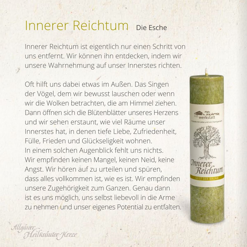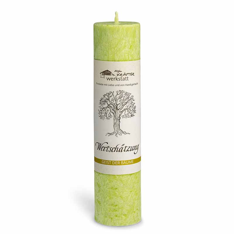 So steht beispielsweise der Holunder seit jeher für die Wandlung auf allen Ebenen oder der Weißdorn als Erwecker der Herzenskraft. Momentan bieten wir zehn unterschiedliche Allgäuer Heilkräuter-Kerzen aus der Baumserie.