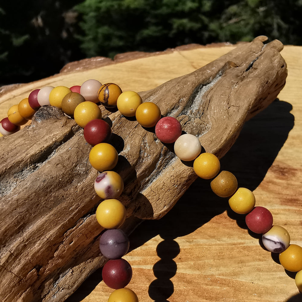 Edelsteinkette LEBENDIGKEIT mit Mookait matt 6mm Kugeln S925 Verschluss