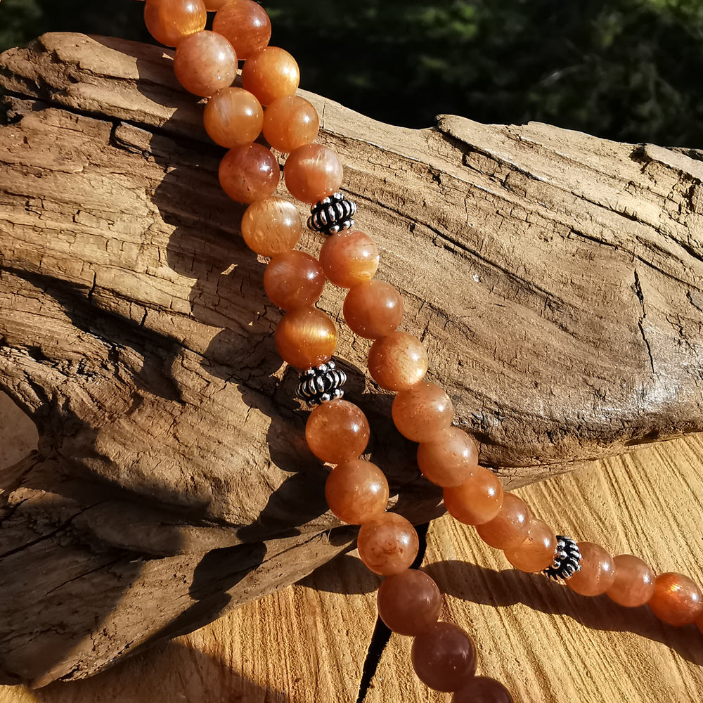 Edelsteinkette LEBENSFREUDE mit SONNENSTEIN EXTRAQUALITÄT 6mm Kugeln S925