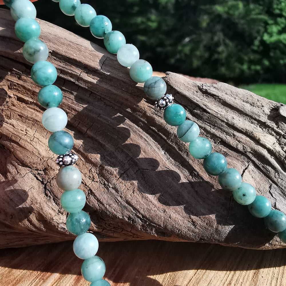 Edelsteinkette mit UNIVERSELLE LIEBE mit SMARAGD 5mm Kugeln S925