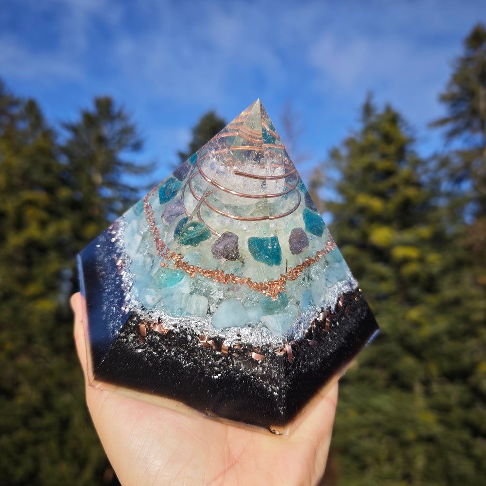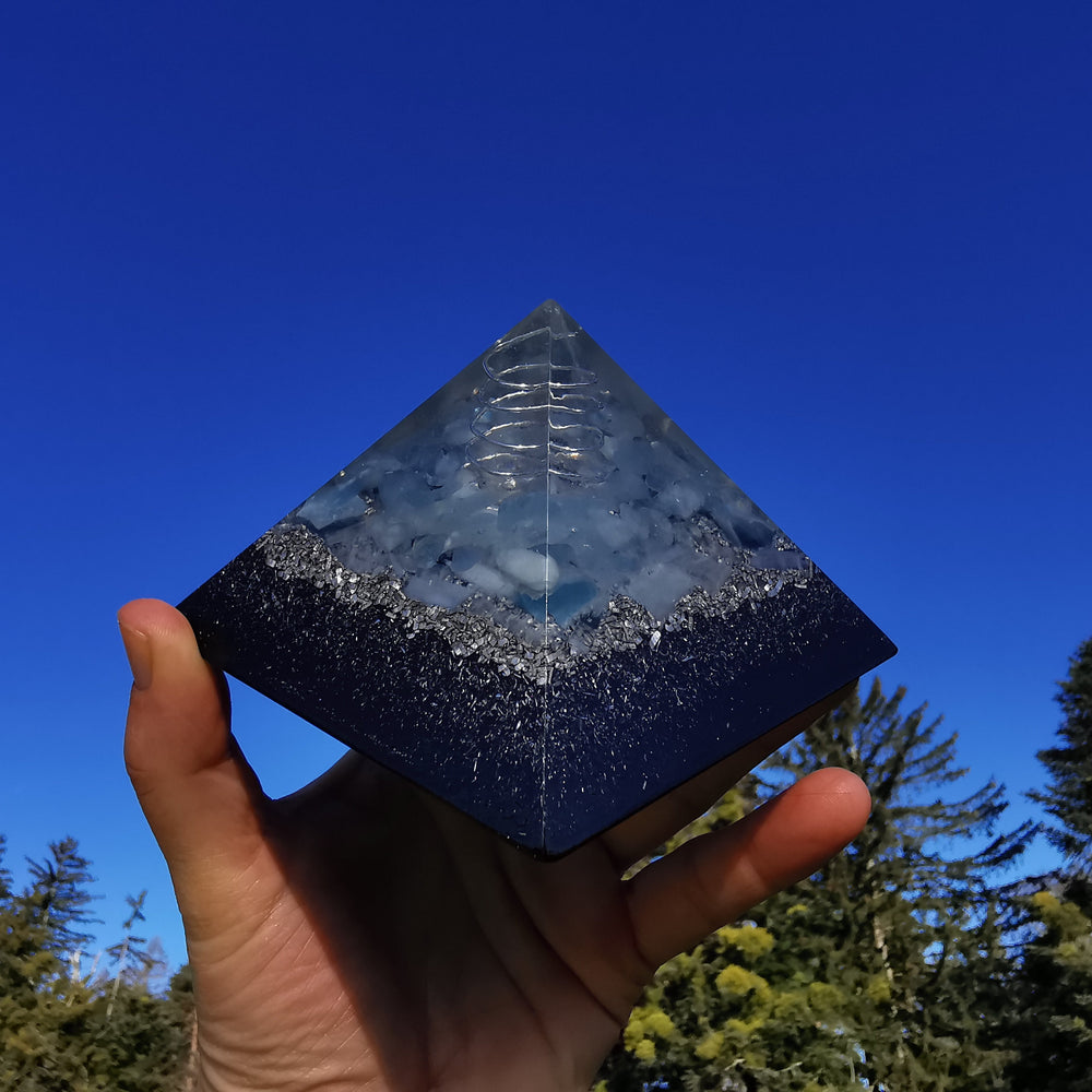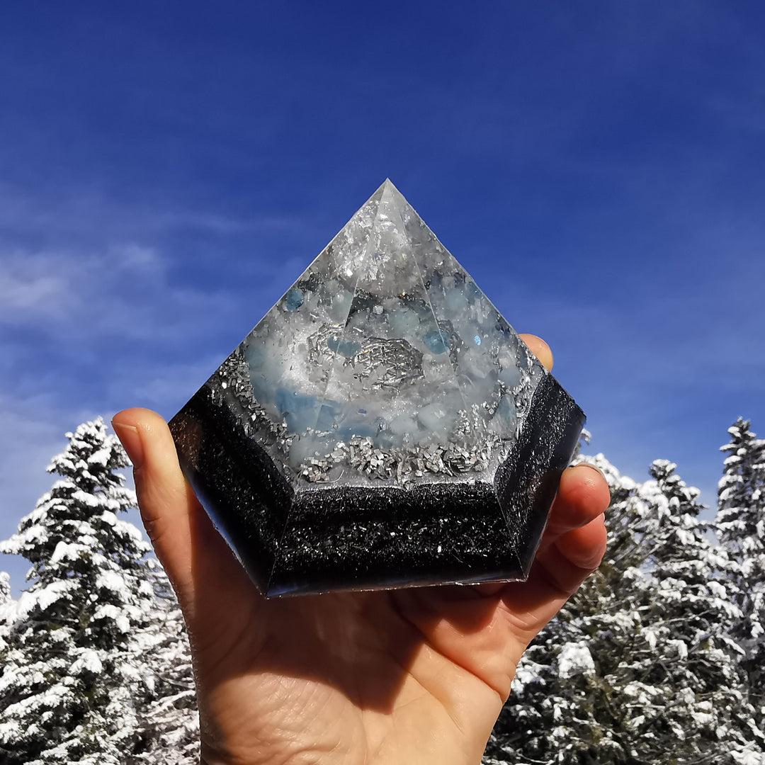 Pentagonale Pyramiden basieren auf dem Fünfeck. Das Pentagon mit Spitze nach oben, ist mit Harmonie und Proportion (Leonardo da Vincis „Vitruvianischer Mensch“) verknüpft. Sie symbolisiert auch die Ebene des freien Willens. Das Geistige strömt dem Menschen aus der Höhe entgegen (Pentagon mit Spitze nach oben). Der Mensch hat die Wahl sich zu entscheiden wie er diese Kraft aus dem geistigen für seine geistige Entwicklung einsetzt. Zur Manipulation oder zum Dienst an der Wahrheit und dem Licht. Eine Pyramide gilt als Symbol für Stabilität, Aufstieg und Verbindung von der Basis (Materie) zur Spitze (Geist). Die pentagonale Pyramide kombiniert beides: die Fünf als Zahl der Balance und die aufsteigende Struktur → teils wird sie auch als Symbol für die Verbindung der fünf Elemente mit spiritueller Entwicklung gesehen.