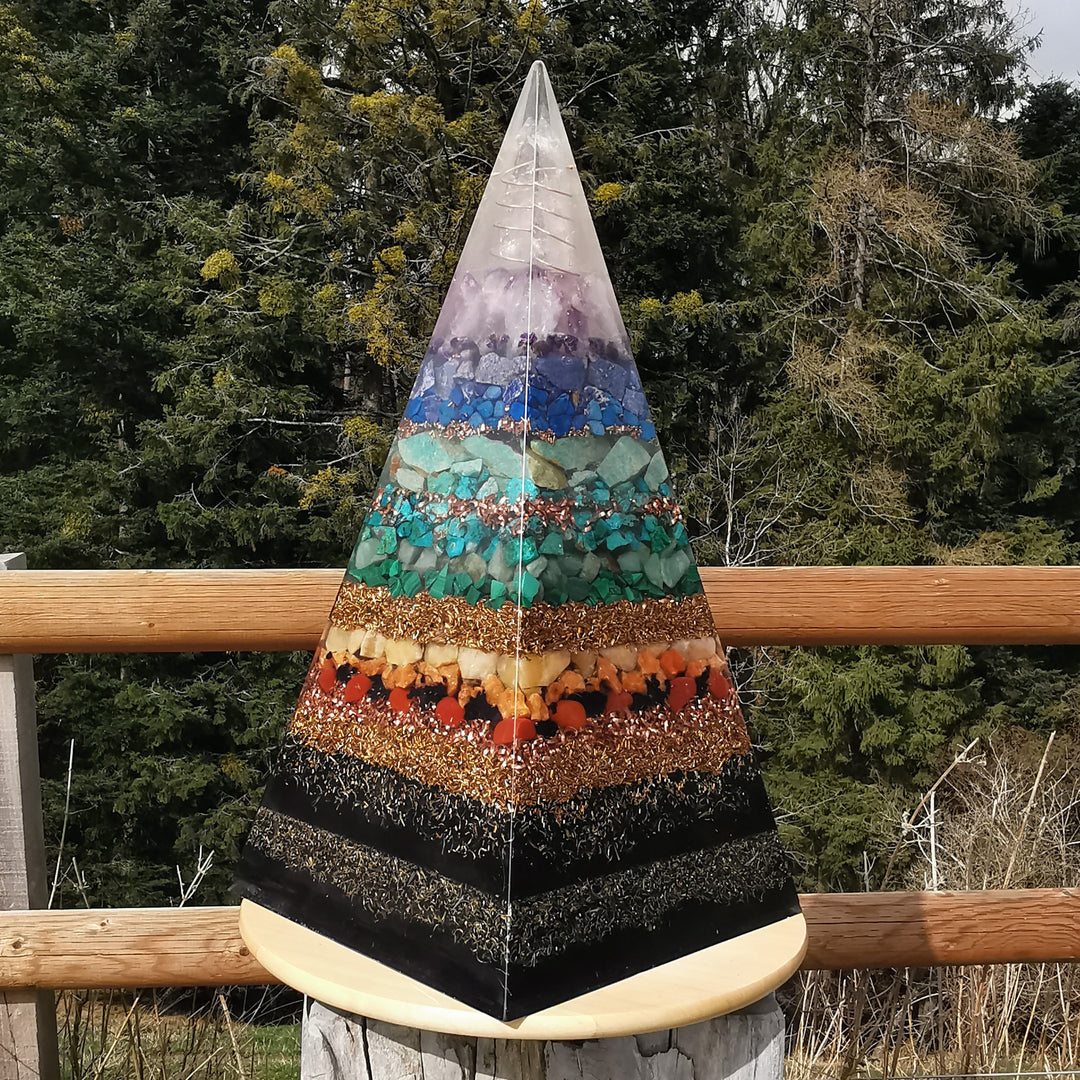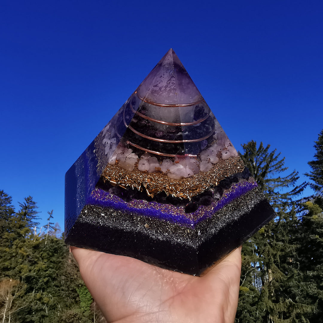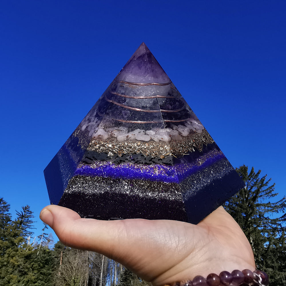 Hexagonale Pyramiden basieren auf dem Seckseck. Sie symbolisieren die Vollständigkeit und Harmonie der Natur, aber auch Stabilität und Struktur sowie die Manifestation des Geistigen auf der materiellen Ebene. Also die Auswirkung und Anerkennung der geistigen Gesetze in der Materie hier auf der Erde. → Sie steht zudem für die sechs Richtungen (N, S, O, W, oben, unten) und spirituellen Aufstieg.