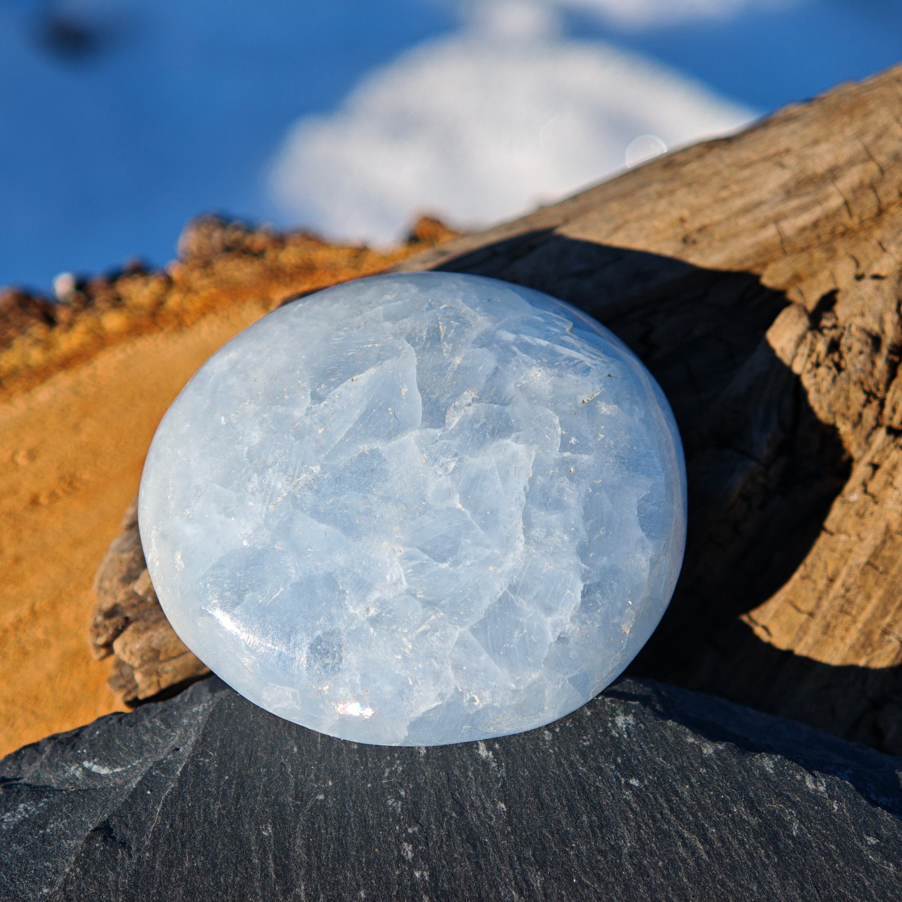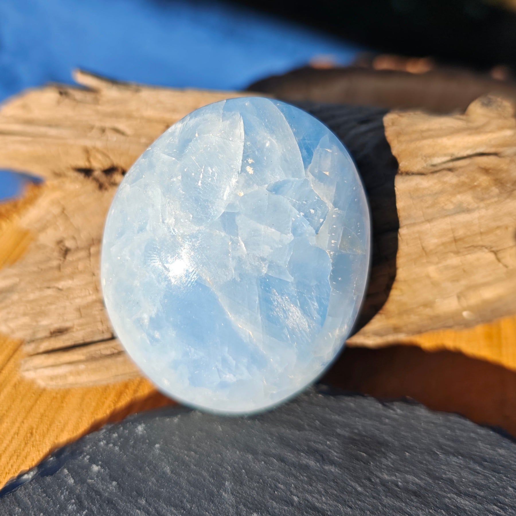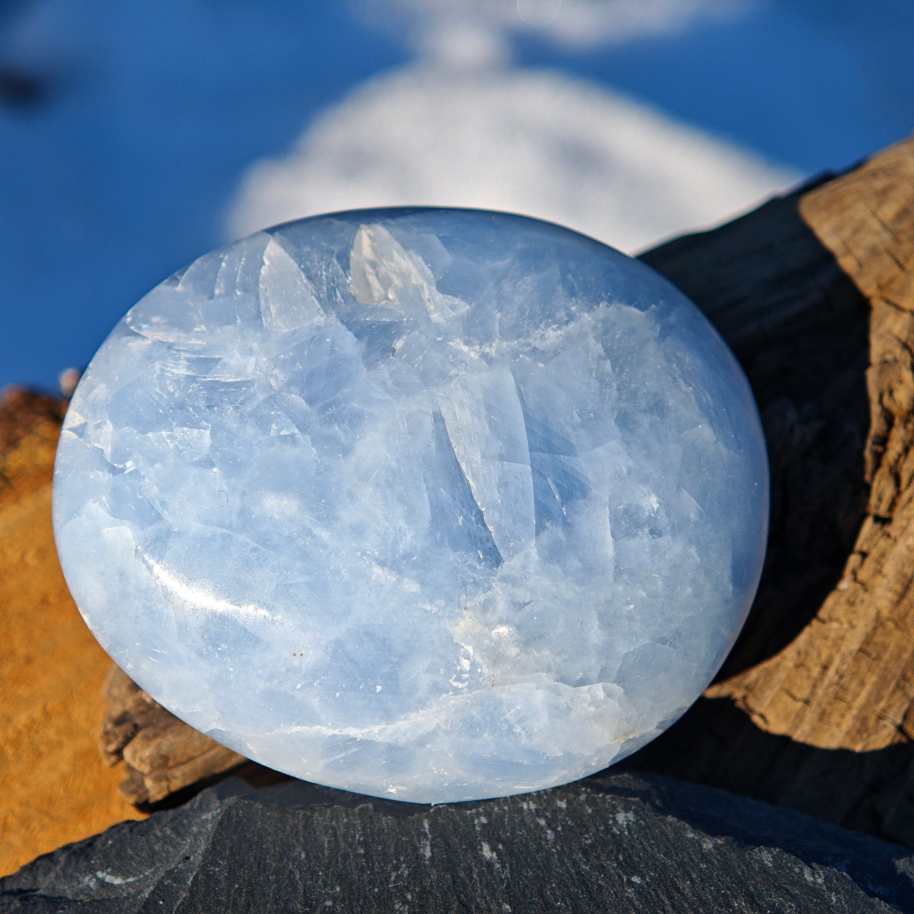 Blauer Calcit: Wirkt beruhigend und stärkt die Standhaftigkeit. Er wirkt insbesondere auf die Haut- und Schleimhaut. Er hilft bei der emotionalen Abgrenzung, gerade bei Kindern die unruhig sind, weil sie etwas verpassen könnten, oder hochsensibel sind. Er wirkt auf das Halschakra und den gesamten Halsbereich, welcher für den Selbstausdruck, die eigene seelische Bestimmung steht.