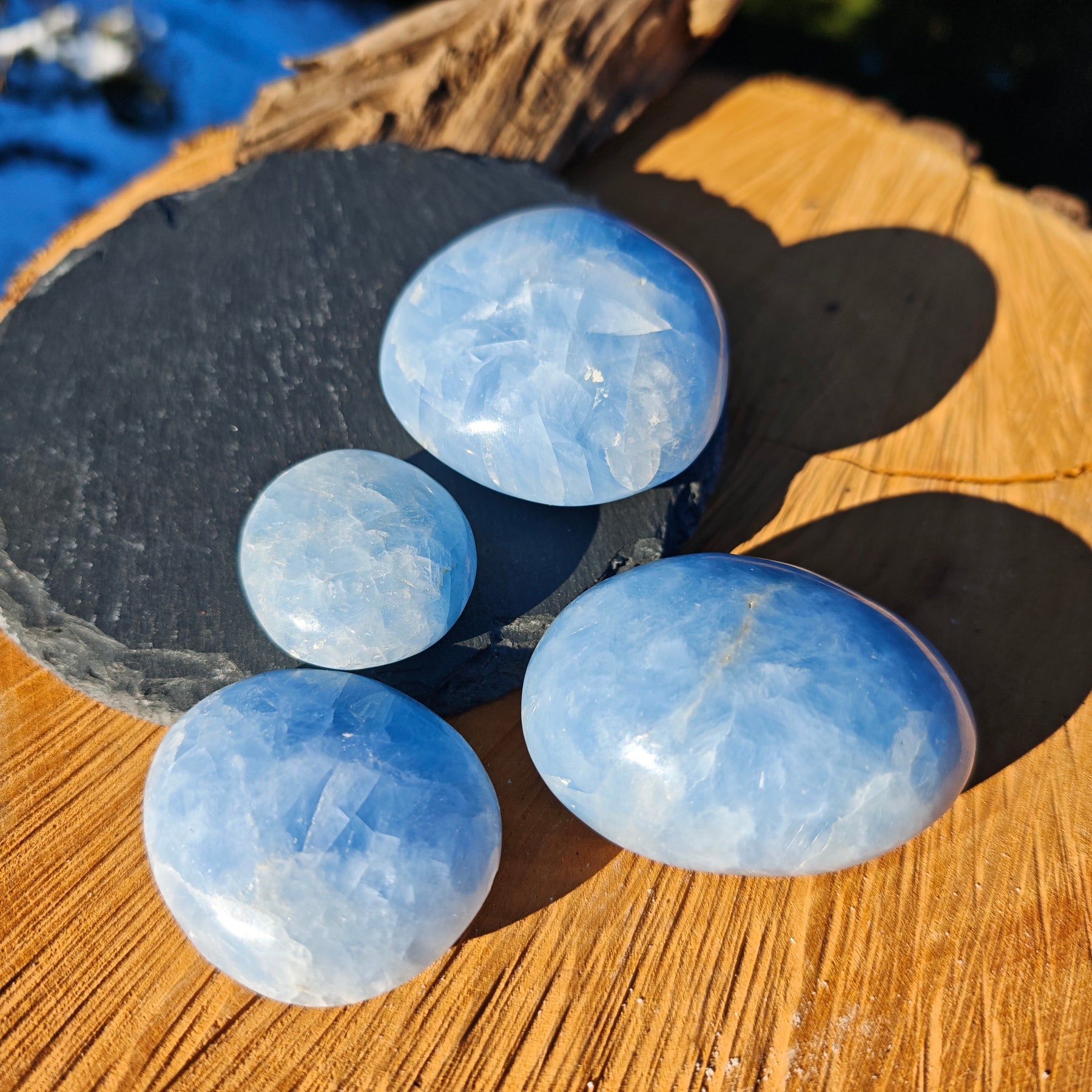 Calcit blau (Entwicklung-Standhaftigkeit) Handschmeichler 4 zur Auswahl
