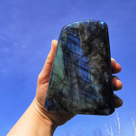 Labradorit öffnet uns die Augen für unsere wahre Identität, stärkt die Intuition und die Medialität. Sein buntes, wechselhaftes Farbenspiel und seine Anwesenheit im Raum fördert Kreativität, Begeisterungsfähigkeit, Phantasie und Ideenfülle. Er schützt vor Energieräubern, vermag aber auch psychische Angriffe abzuwenden, wenn andere negative Emotionen gegen einem verwenden. Er reinigt und schützt zudem die Aura und hilft wenn nötig dabei das Herzschakra abzuschirmen.und öffnet uns für die Erkenntnis, dass auch der Mensch ein Lichtwesen ist.