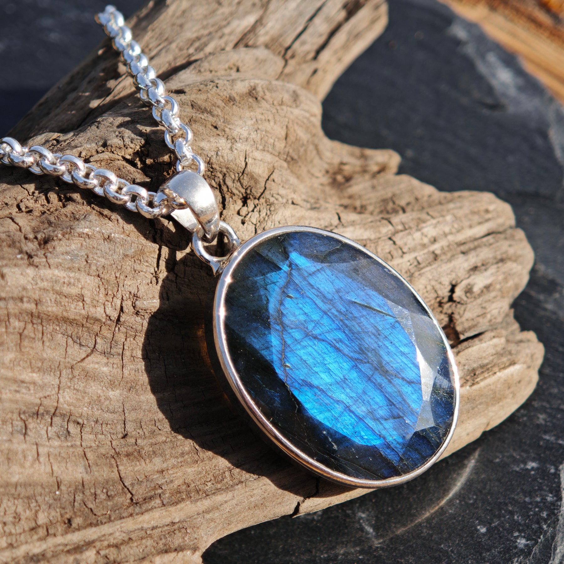 Labradorit aus Madagaskar in Extraqualität gefasst in massivem Silber 925
