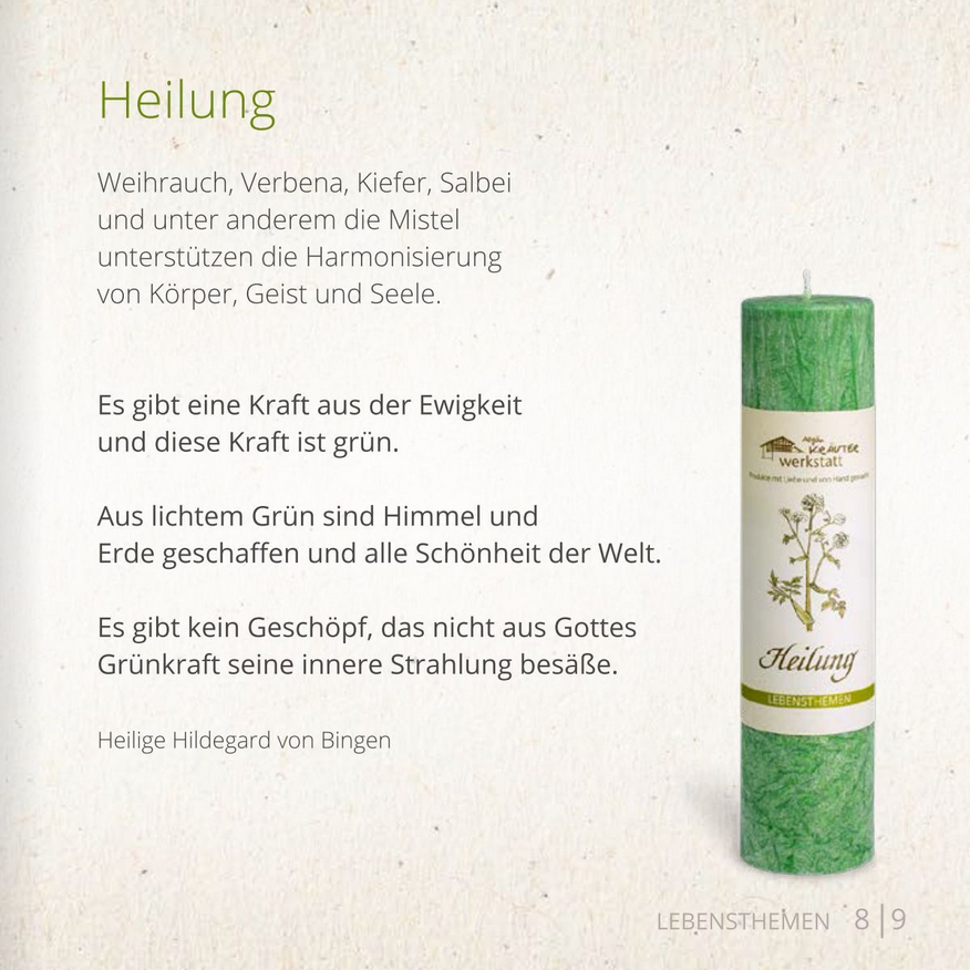 Diese Bedürfnisse, Motive und Wünsche spiegeln sich in den vierzehn Heilkräuterkerzen dieser Serie.