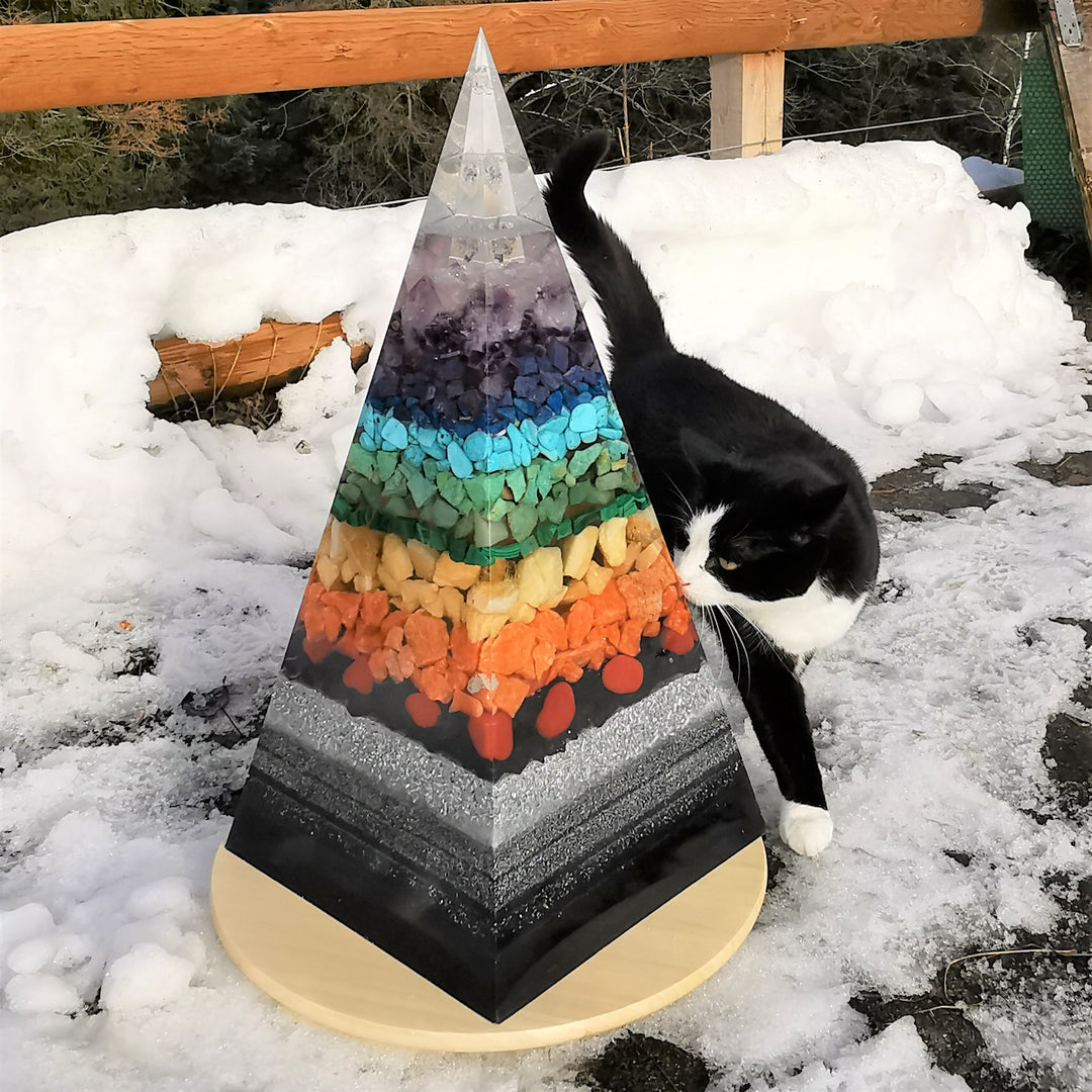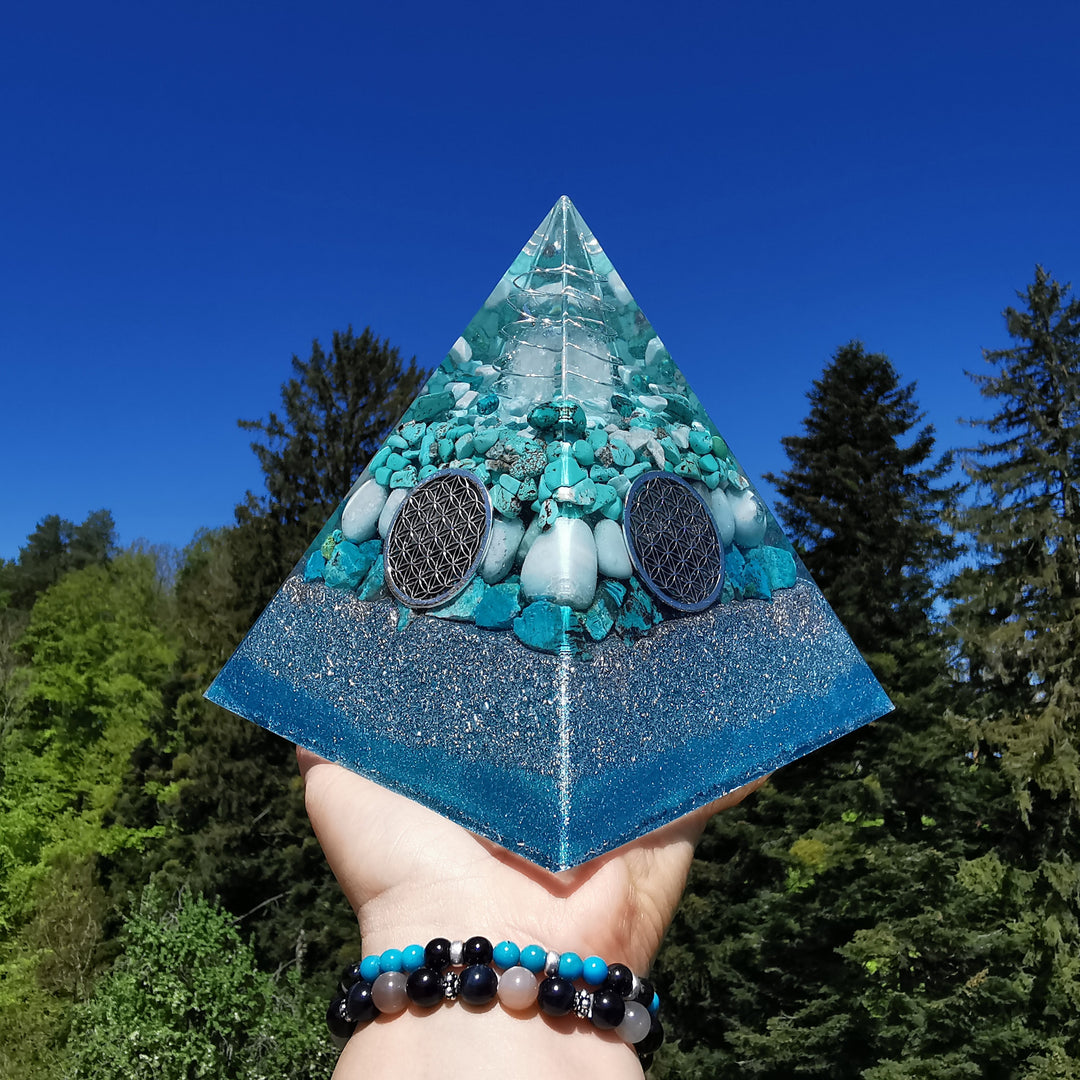 Alle Orgonite sind von Hand gemachte Unikate. Sie bestehen aus individuellen Edelsteinen und einer Orgonitmatrix. Dadurch wirken sie lichtbringend, ausgleichend und harmonisierend.