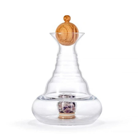Karaffe Alladin Basic 1,2l Edelsteinfach und Olivenholzstöpsel - mundgeblasen inkl. Wassersteine